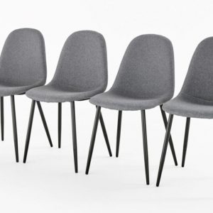 Stylish Upholstered Dining Chair – GreyFabric with BlackSteel Frame