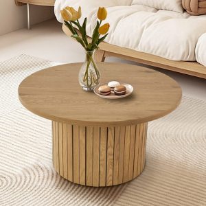 Modern Round Wooden Coffee Table – Warm & Inviting
