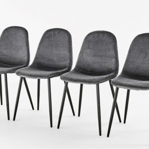 Set of 4 Grey Plush Velvet Dining Chairs – Modern Elegance with Steel Legs